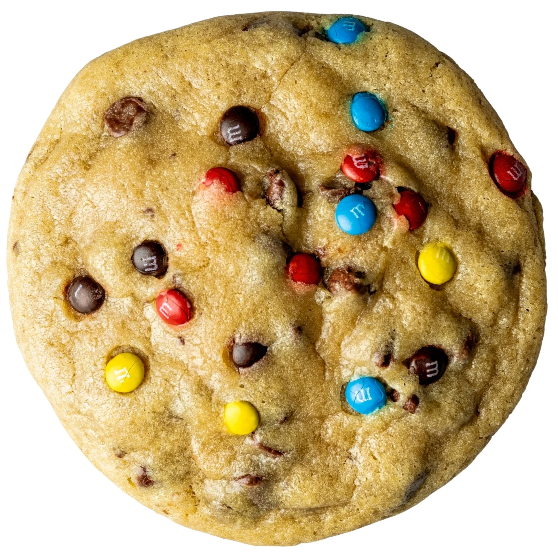Flour, Organic Cane Sugar, Brown Sugar, Baking Soda, Eggs, Pure Vanilla Extract, Unsalted Butter, Kosher Salt, Semi Sweet Chocolate Chips, Brownie, M&Ms