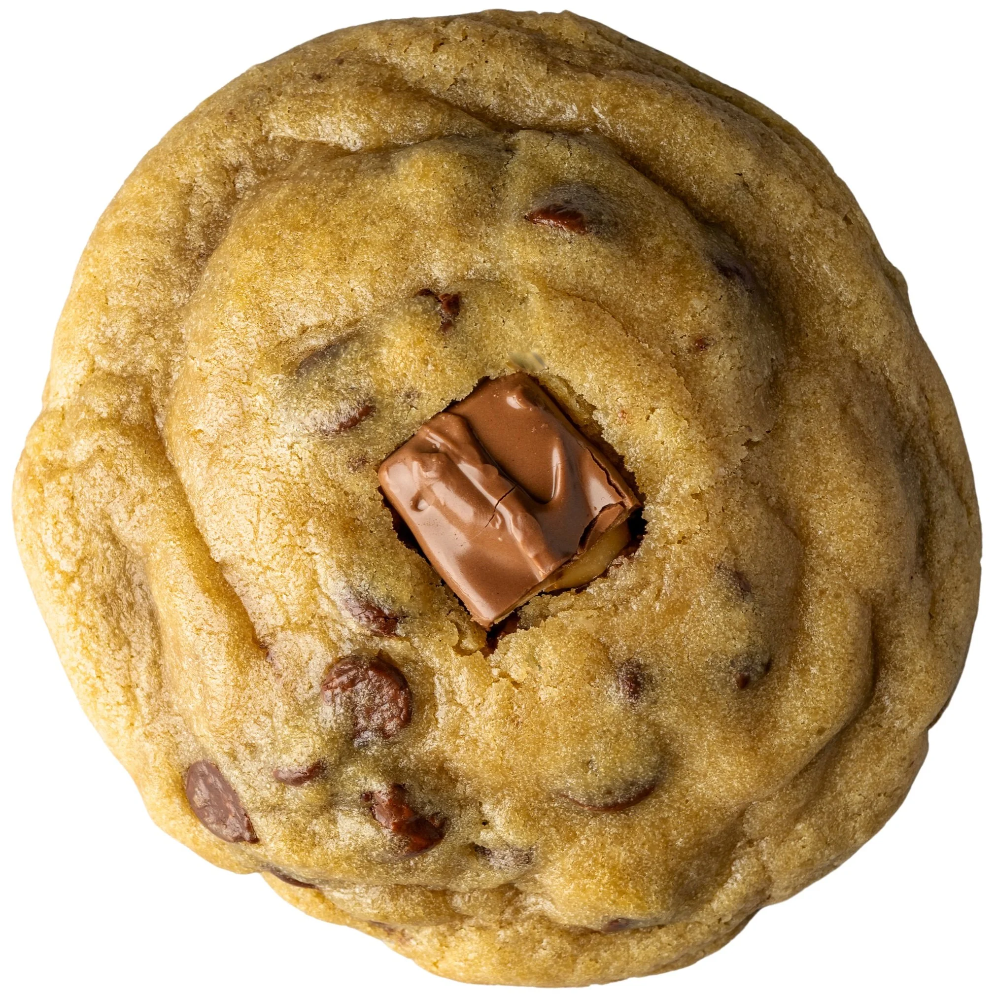 Flour, Organic Cane Sugar, Brown Sugar, Baking Soda, Eggs, Pure Vanilla Extract, Unsalted Butter, Kosher Salt, Semi Sweet Chocolate Chips, Milk Chocolate, Snickers